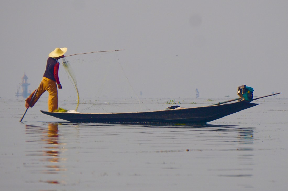 Soe and the boatman pick us up in the morning and we head out to see the unique way of life on the lake. The fishermen of the Intha tribe, are known for their leg rowing technique that allows them to see beyond the floating plants and to fish and move at the same time. It is amazing to watch.