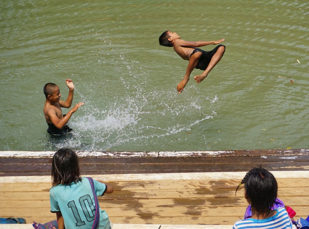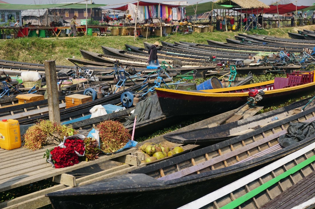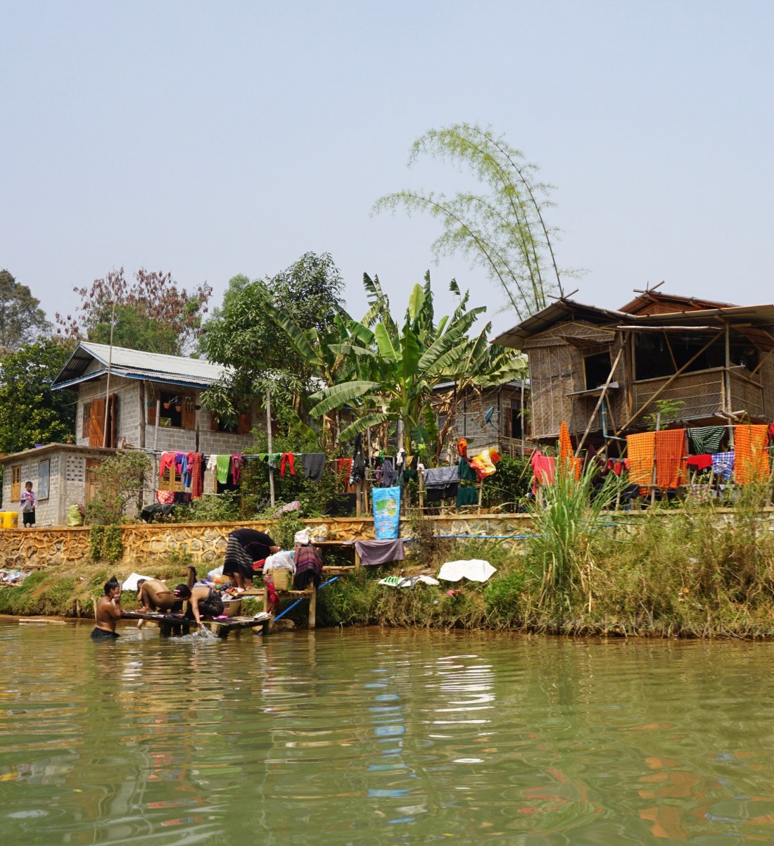 We travel through a Venetian network of canals. Everything moves by boat. We go from a silversmithing village to a lotus and silk weaving village to the huge Phaung Daw Oo Pagoda via these waterways. From laundry, bathing, shopping and playing, to working, praying and socializing; it all happens on the water. No cars, no motorbikes, just boats.