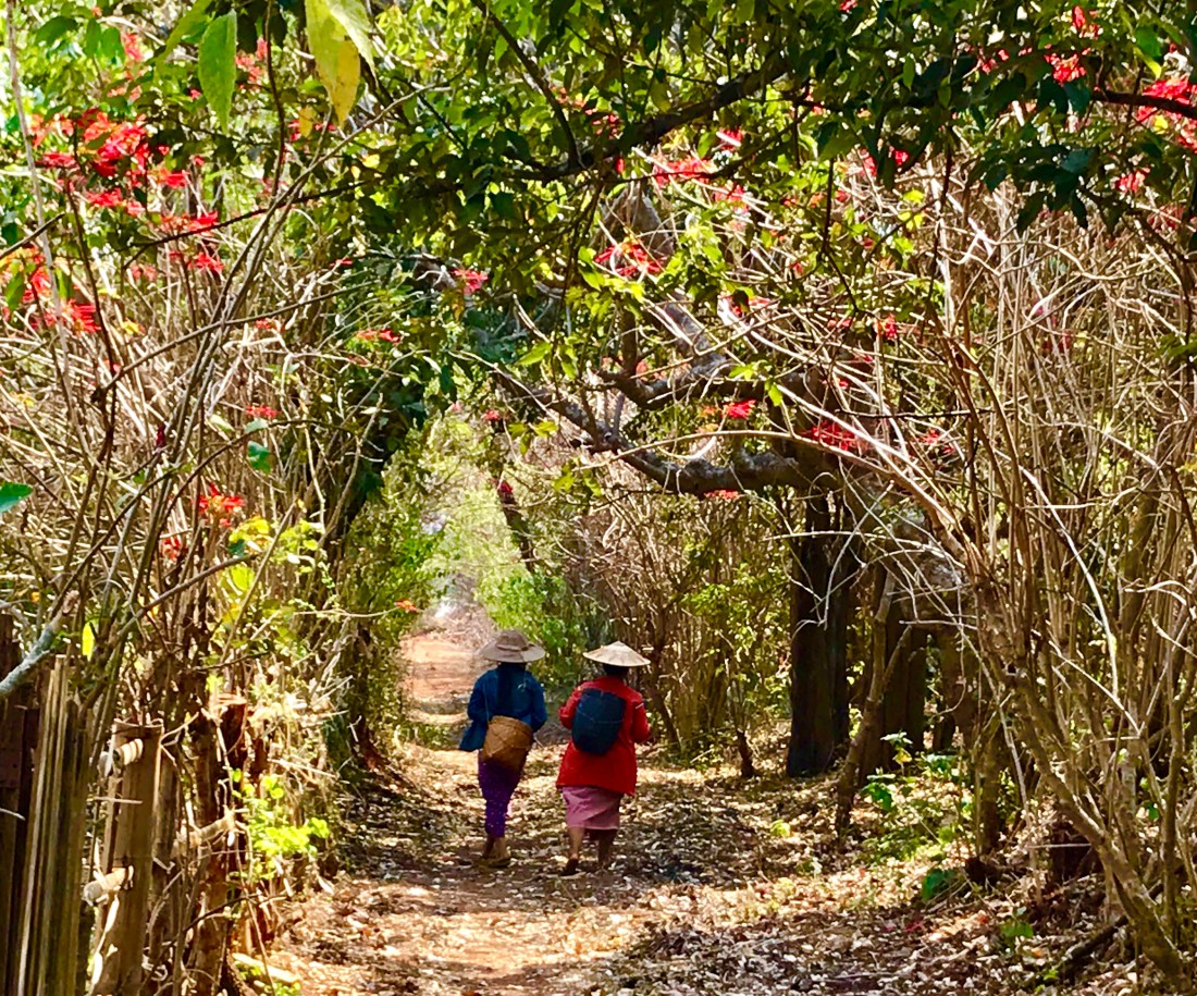 It is late March and fields are idle with manure piles waiting to be furrowed under in May. Avocado plants have woven bamboo hats to protect them from burning. There are cattle and Brahmin cows roaming and I don’t know how they survive in this waiting time before the rains. Humans have a Water Festival, “Thingyan” in mid April when people celebrate the Buddhist New Year and not a moment too soon. Villages, cities bring in a huge network of pipes, valves and hoses and spray a colossal amount of water on the revelers for days, accompanied by loud Asian music, of course.