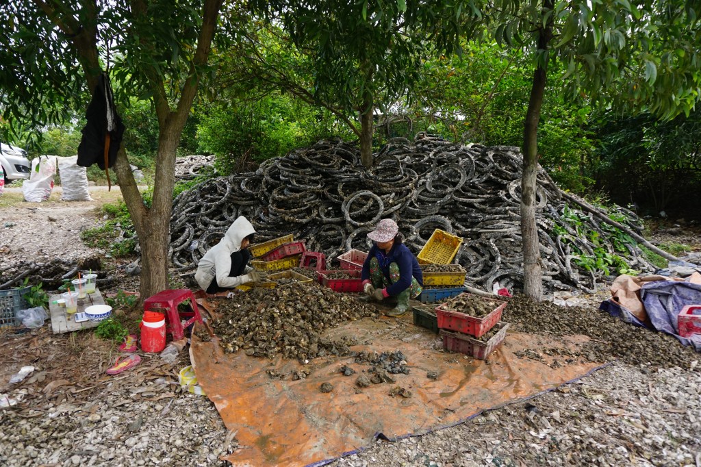 We follow the water for a ways before the climb and get to enjoy some of the best oysters ever eaten from a nearby lagoon. A local practice is growing oysters on old bicycle tires, then scraped off and sold. Our driver steers us to his favorite place minus the tires. We can only say yes.