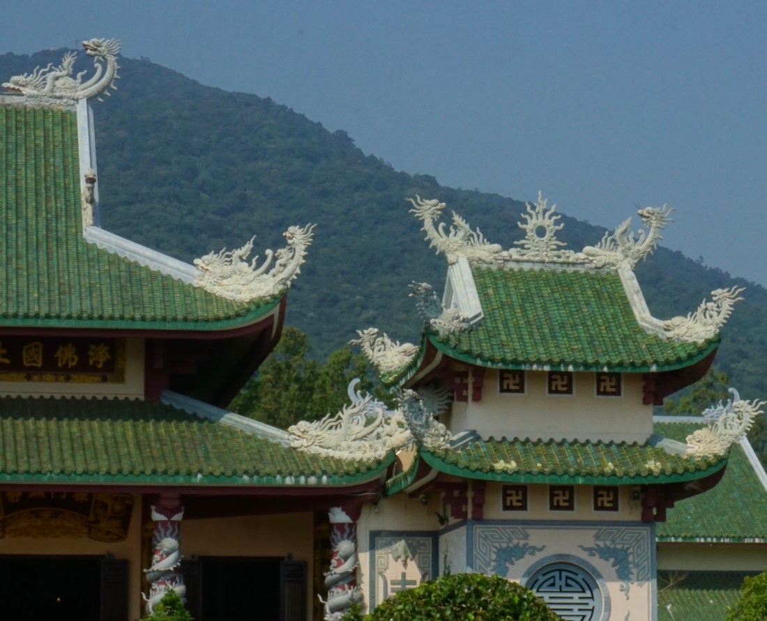 We descend toward the peninsula of Son Tra or Monkey Mountain to visit the Son Tra Linh Ung Pagoda that overlooks the East Sea. Originally a humble Buddhist shrine 200 years ago that protected the fisherman was recently redone and expanded into a park complete with ornate temples, exquisite bonsai plantings and a 67 meter tall Quan Yin statue. It is a serene place with beautiful views and a quiet getaway from the city.