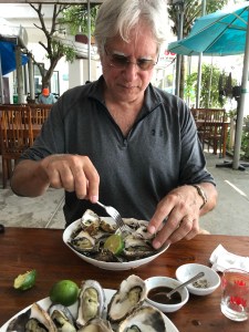 We follow the water for a ways before the climb and get to enjoy some of the best oysters ever eaten from a nearby lagoon. A local practice is growing oysters on old bicycle tires, then scraped off and sold. Our driver steers us to his favorite place minus the tires. We can only say yes.