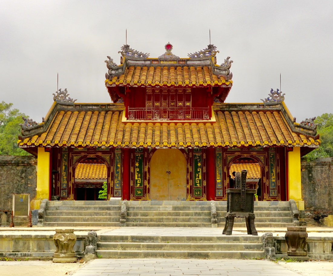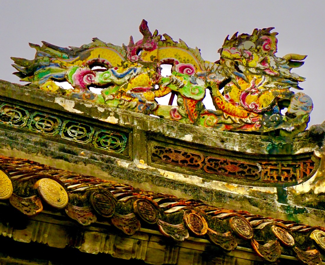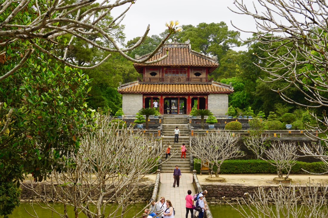 The legacy of the Nguyen dynasty is reflected in the 7 glorious tombs of its 13 emperors scattered around the city. We can only visit three: Minh Mang (reign 1820-1841)), Tu Duc (1848-1883) and Khai Dinh (1916-1925). While the tombs house the emperors remains they are also idyllic places of contemplation, worship and repose as well as romantic and extravagant displays of wealth and architectural style.