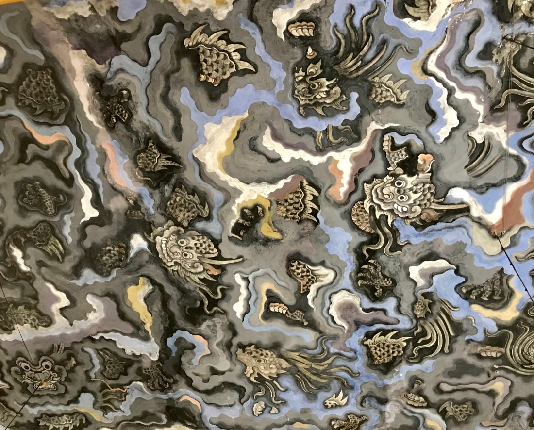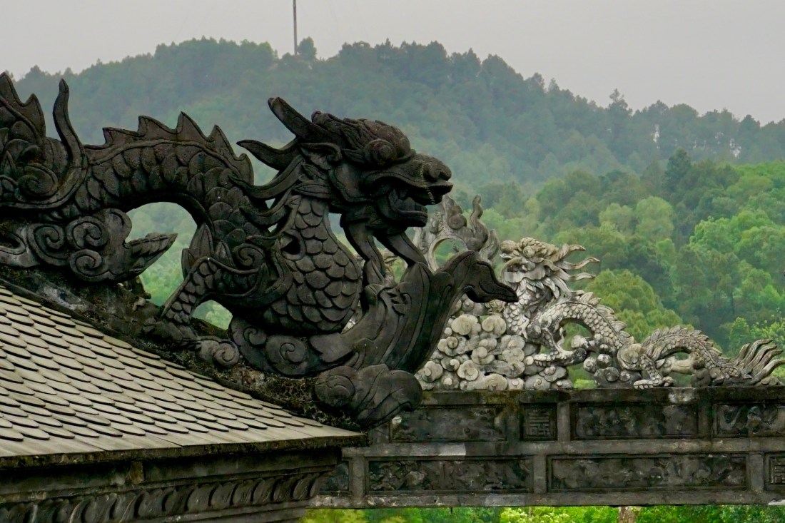 It is also the most decorated mausoleum. Every surface is covered in bas relief of dragon, demon and floral motifs. In stone, in ceramic, in paint, on pillars, walls, ceilings, roofs.