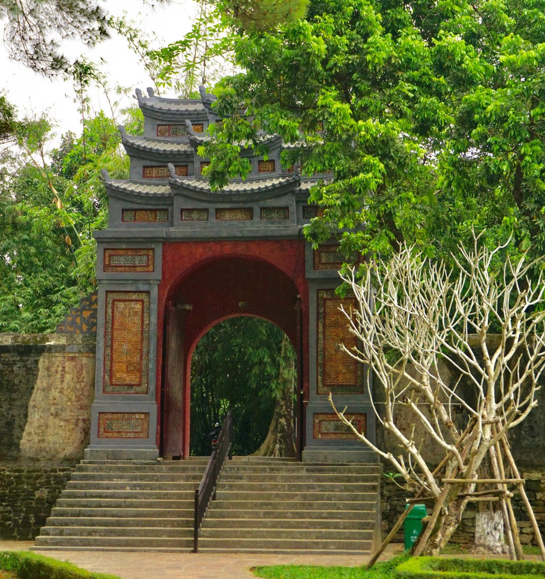 Minh Mang died in 1841 and the tomb was completed by his son in 1843. It took 10,000 laborers and artisans to complete the work. The actual crypt is a dramatically austere vault reachable at the end of a wonderful expanse of paths, courtyards and temples with terraced gardens and lakes. As I stroll, I feel immersed in nature, serenity and beauty. The environs of the tomb are indeed a resting place.