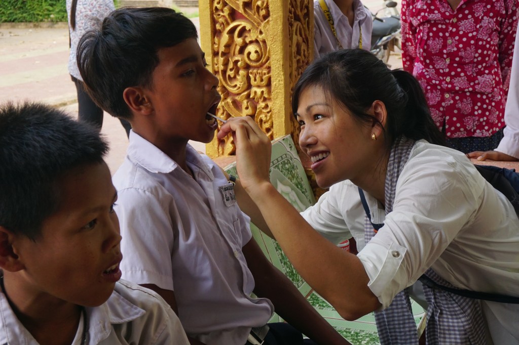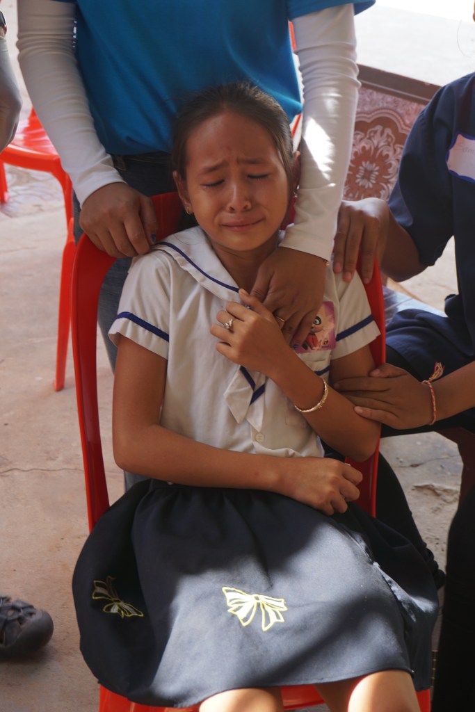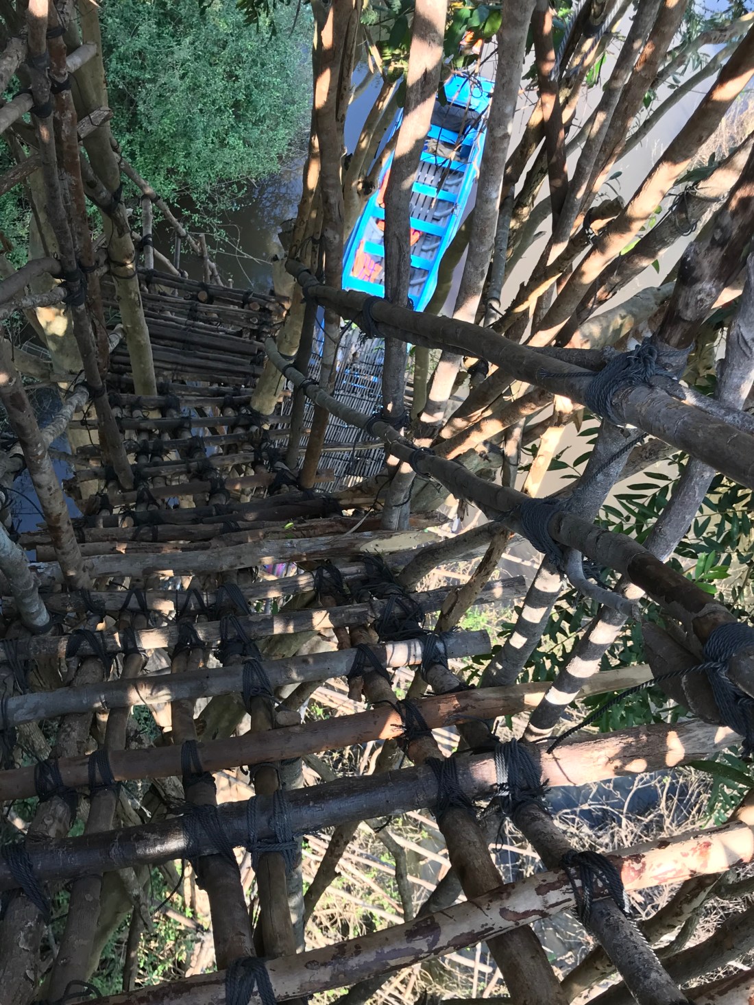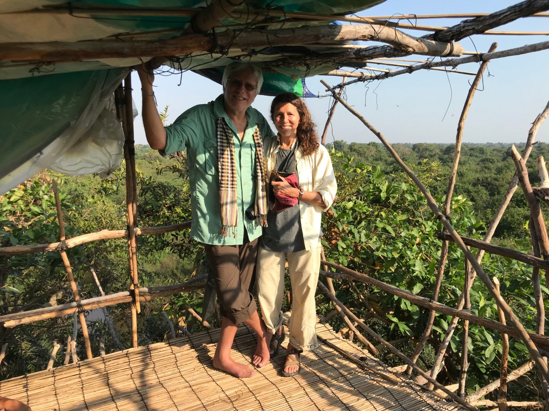 We will be staying with a farmer and his wife, plus Pheang and Phe. The farmer couple’s son is guiding us, carrying a huge bag on his head filled with mattresses, blankets and mosquito netting for us all. It’s a sleepover. Pheang is throwing sticks at starfruit and grapefruit trees and carrying the retrieved bounty. I’m just putting one foot in front of the other and counting minutes. We pass several unused huts as we go up hills, through mud and jungle. As the mist comes in we finally…