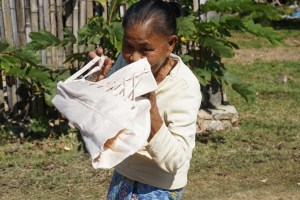 We go to see Mr Mang to consider some tours. He is quite a jovial and persuasive salesman and we find ourselves signed up for a 2 day guided trek before we even think about it. He describes a long boat upriver for an hour to a small village, Houy Hoi; trek 4 hours to the next village, Phayong; trek another 2 hours to a boat and go upriver another hour to visit the weaving village of Sopjam, his home village, and stay overnight there or hike another 30 minutes to a homestay in a hut on a farm. Our eyes widen. He immediately tries to rescind the hut idea, citing we may be too old to be alone in the hut, but we are hooked. Then some more trekking the next day but with the promise of a swim at the base of Mok waterfall. The deal is clinched. Then he adds we can kayak back to Nong Khiaw. I take an Advil.