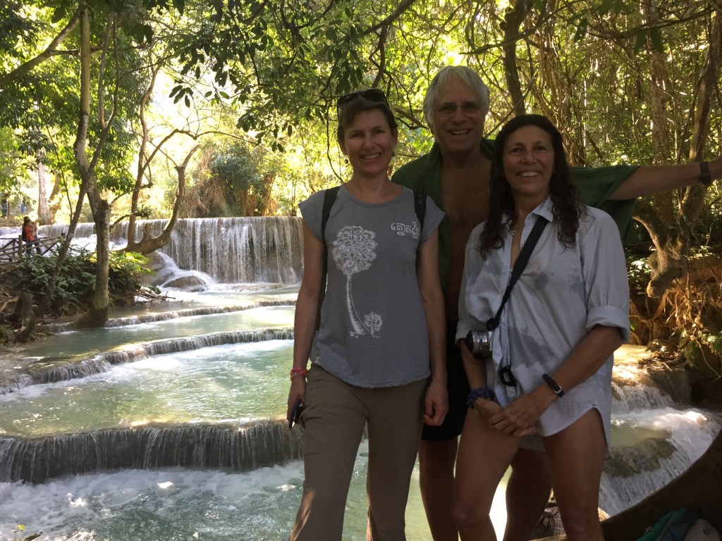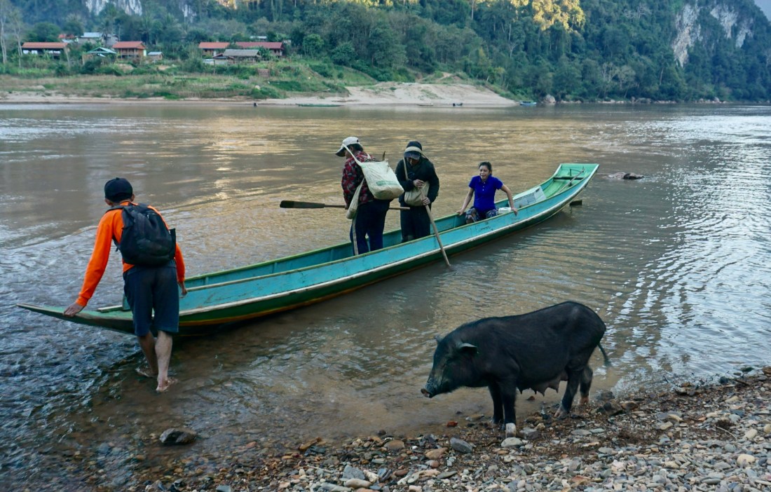 Sometimes, somehow, as it happens when a traveler meets another, a conversation begins that beckons a detour from an intended itinerary. We hear of a few remote villages further north on the Nam Ou that sound intriguing. We let go of traveling to Vang Vieng; its tales of stunning beauty and its dark side of crowds, partying and noise. We point north to Nong Khiaw and further upriver to Muang Ngoi for the next 4 days. Au revoir to Luang Prabang. We leave our luggage at Moonlight Champa and I cram shorts, bathing suit, head lamp, toothbrush, long underwear, sneakers, fleece jacket, camera, water bottle and my beloved cashmere scarf into my day pack. While it reaches 95 degrees between 10:30 and 4 , it goes down to 45 at night which feels downright chilly.